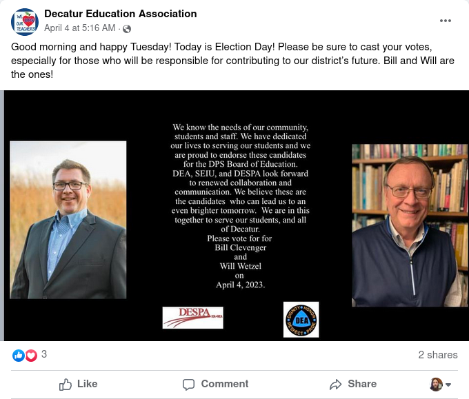 April 4th DEA endorsements facebook post